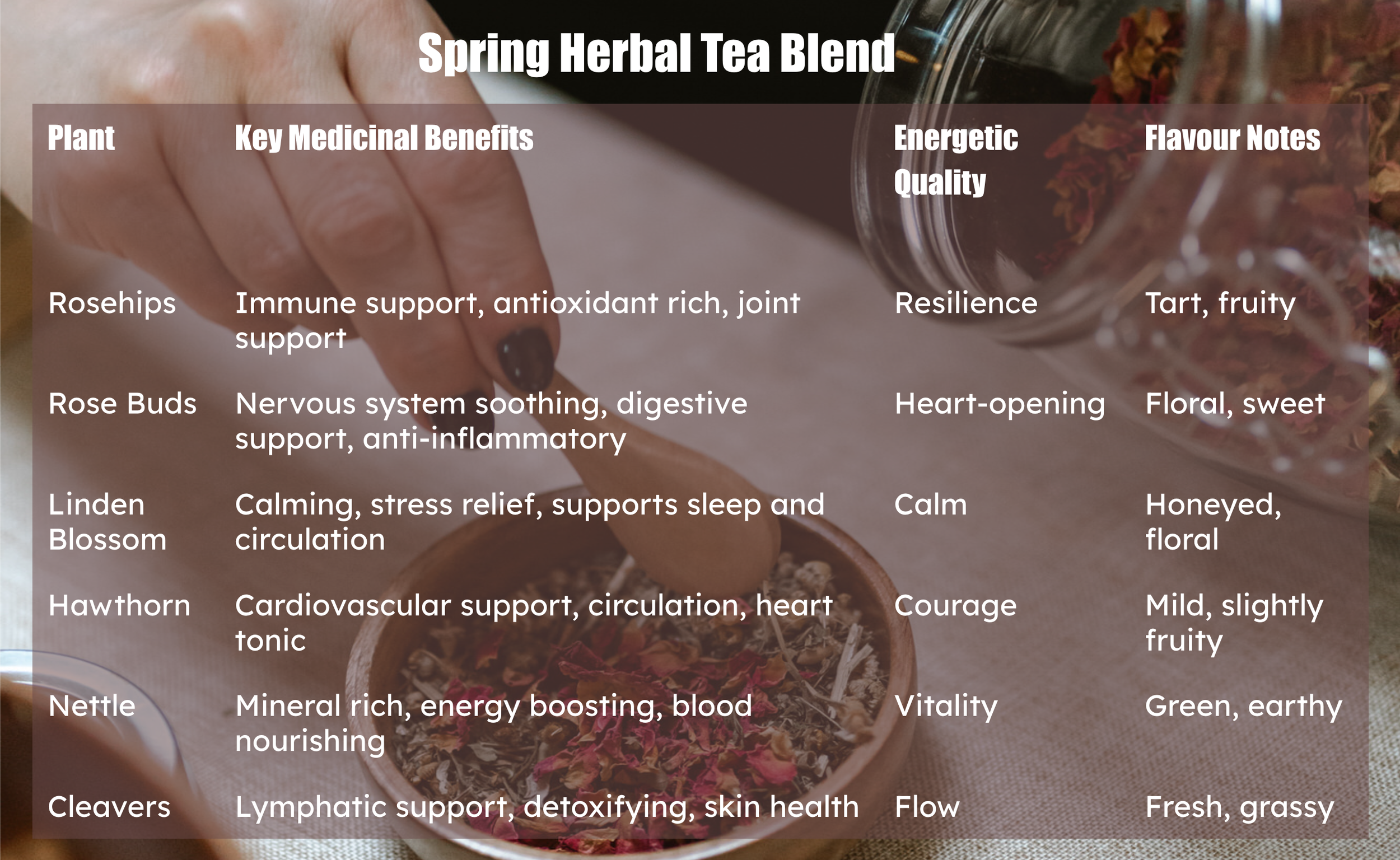 Working with grounding trees Hawthorn & Linden, heart healing Roses and revitalising ‘weeds’- Nettle and Cleavers.